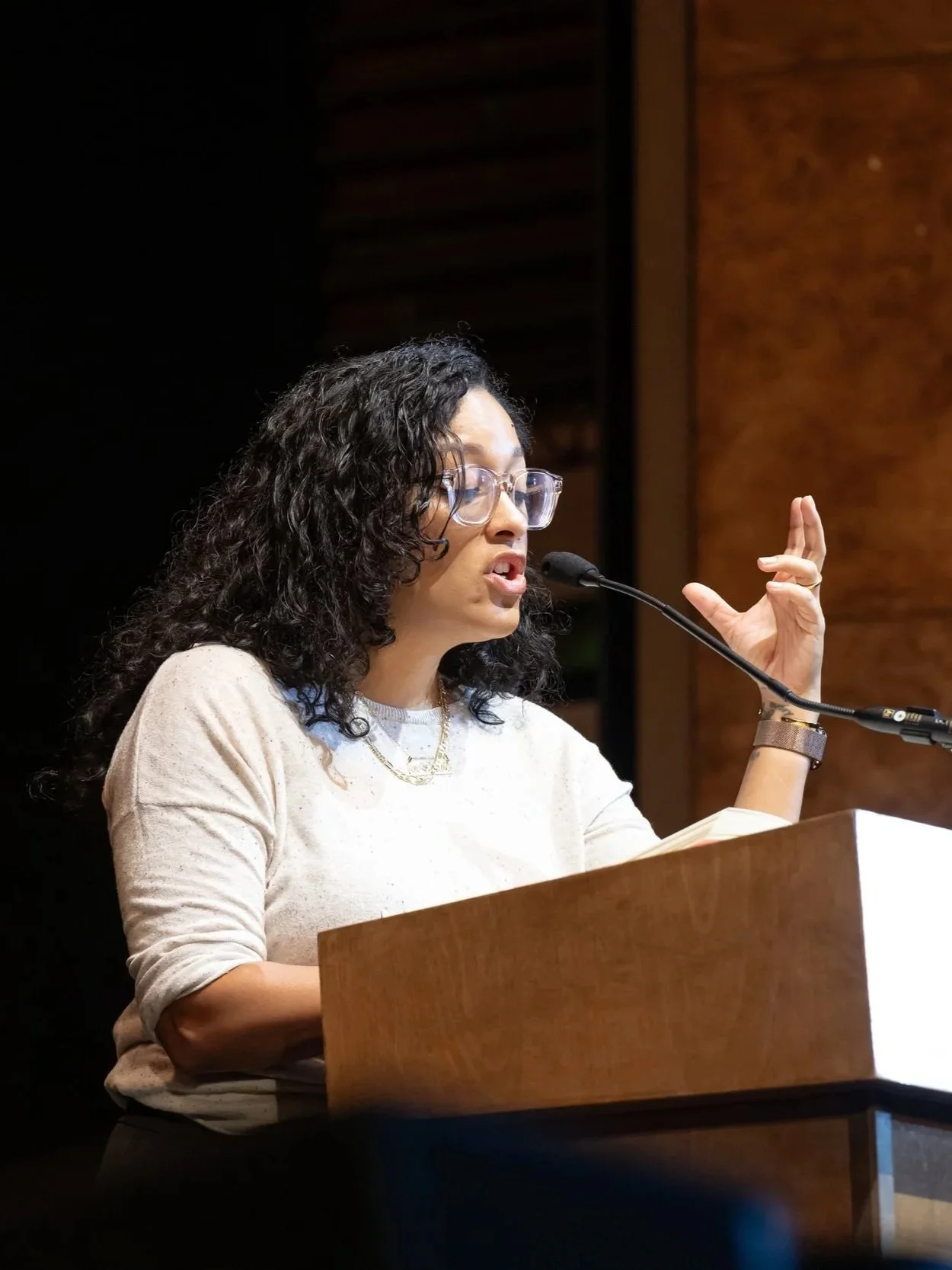 Educator, author, poet, and icon Eve L. Ewing in conversation with Sean Eversley-Bradwell and Nia Nunn at the State Theatre.